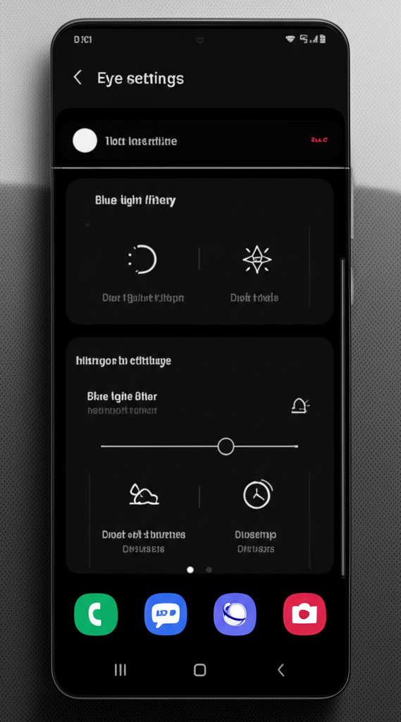 - 시력 보호 모드 설정: 설정 > 디지털 웰빙 및 자녀 보호 > 시력 보호 모드에서 시력 보호 모드를 활성화할 수 있습니다. 시력 보호 모드를 켜면 화면 밝기가 자동으로 조절되고, 블루라이트 필터가 적용됩니다.